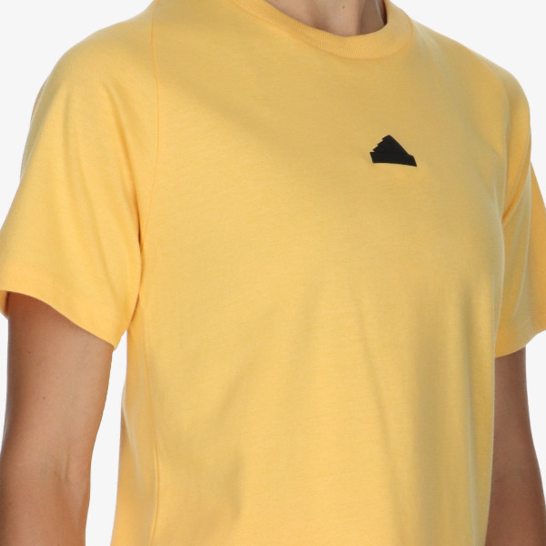 Дамска тениска adidas Z.N.E. Изработена от 65% памук и 35% рециклирана PET плетка, тази тениска е с ключови характеристики, сред които регулируем подгъв с шнурове, висока талия, дължина 7/8 и два странични джоба с цип, тя съчетава по уникален начин форма и функционалност. Матовият силиконов термотрансфер Performance добавя изискано докосване към тази тениска с правилна кройка.